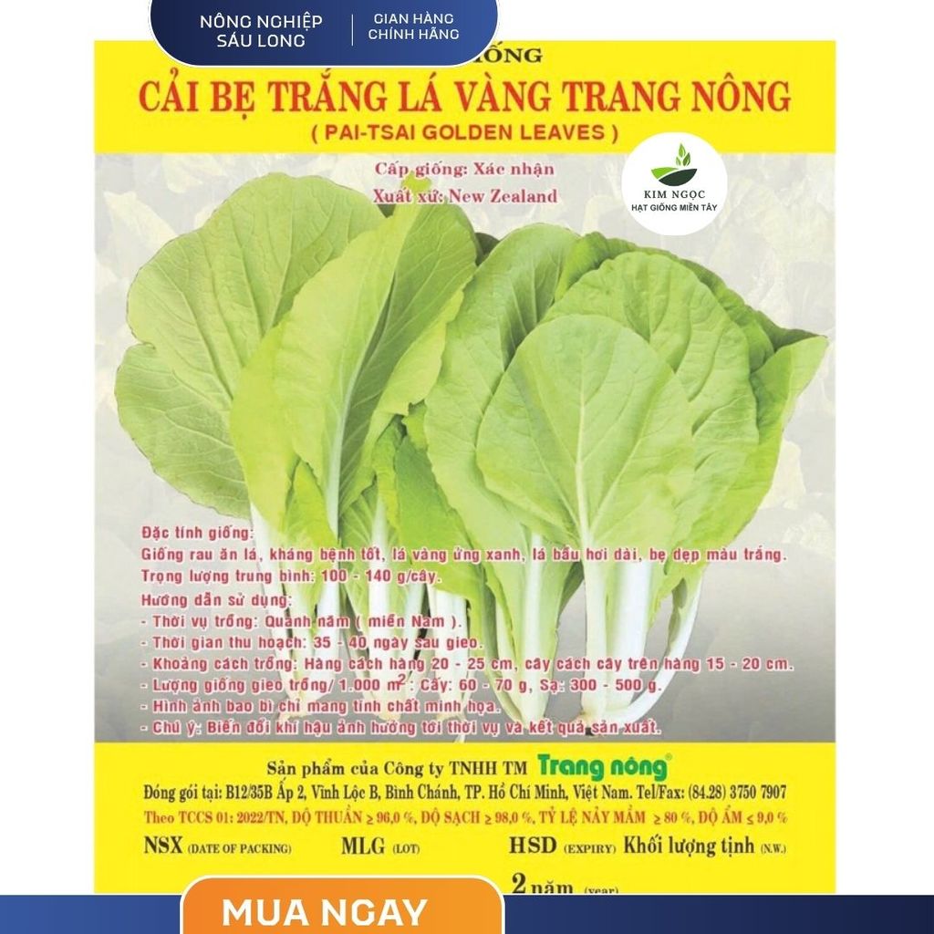 GÓI 20 GRAM – HẠT GIỐNG CẢI BẸ TRẮNG LÁ VÀNG TRANG NÔNG